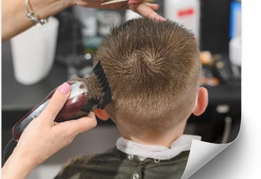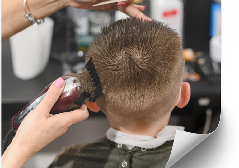 Corte profissional em cabelo infantil.
